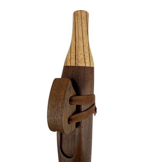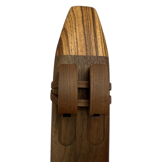 Native American Harmony Double Flute in D minor and A minor by Nash Tavewa, Walnut with Zebrawood Mouthpiece
