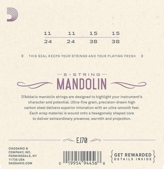 D'Addario Mandolin Ball End, Medium/Light Phosphor Bronze Strings EJ70