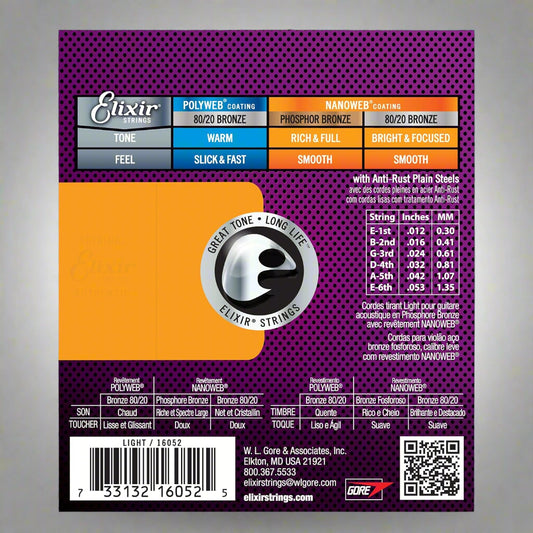 Elixir Phosphor Bronze Nanoweb Guitar Strings, Light, 12-53