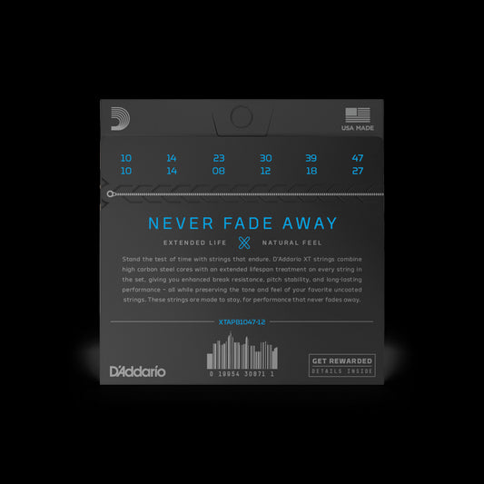 D'Addario Acoustic 12-String Guitar XT Acoustic Phosphor Bronze, Light, 10-47