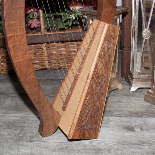 Roosebeck 21 Inch Baby Harp 12 String Walnut Knotwork + String Set + Tuning Tool