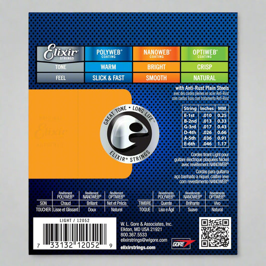 Elixir Nanoweb Electric Guitar Strings, Light, 10-46