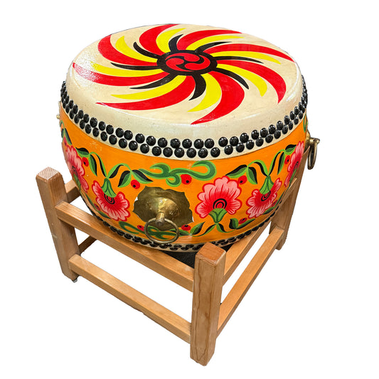中国の唐鼓、美しい絵付けデザインとスタンド付き