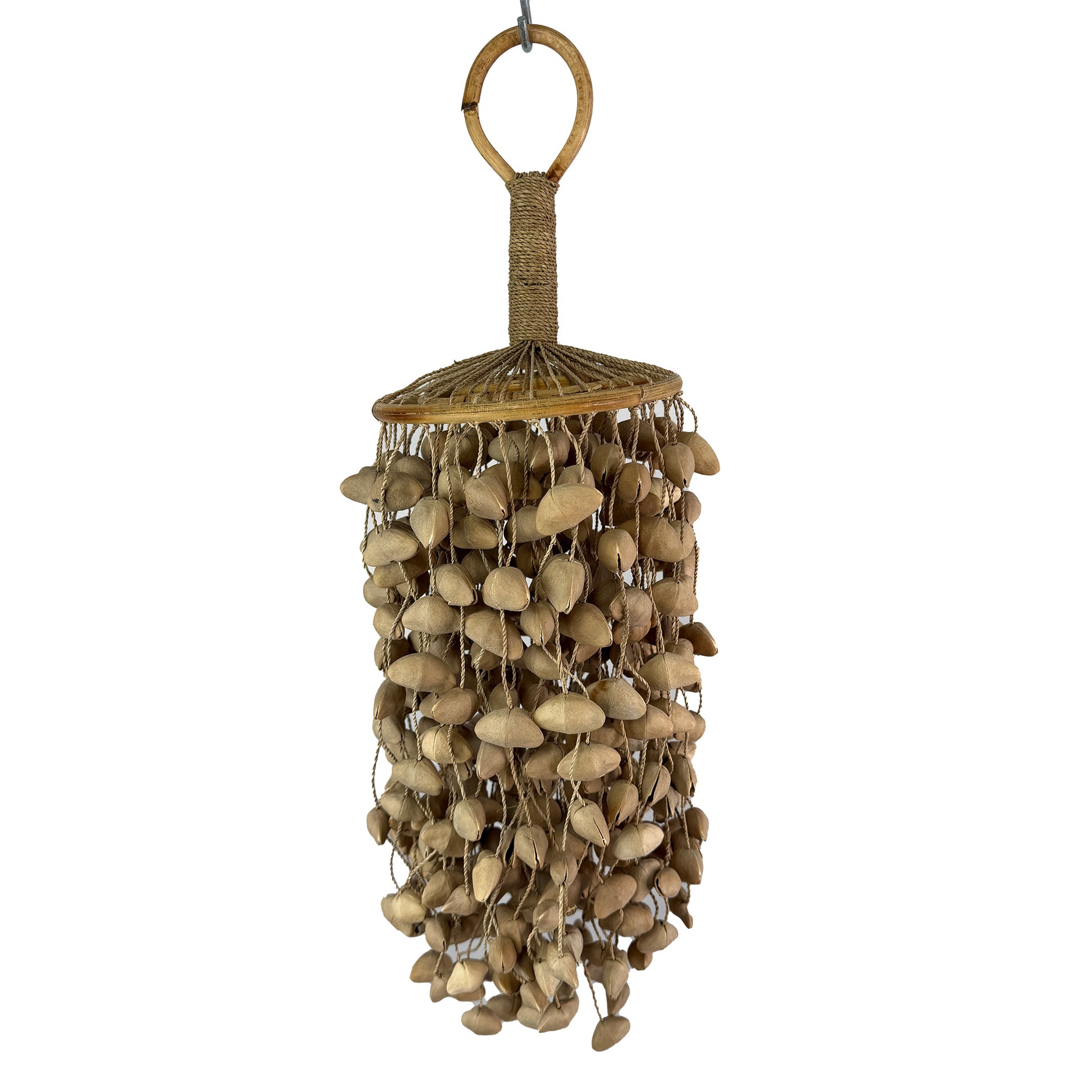 Kenari Nut Shaker, Loop Handle with Rattan Hoops