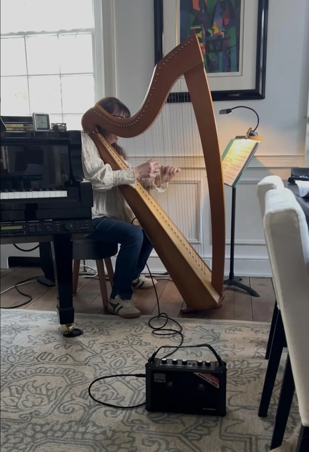 I was looking for the right equipment for my Camac Isolde Celtic harp. I did NOT want to install the Dusty Strings pick-ups- seemed like way too much to add. This little gizmo was easy to install with the little pictures on placement- like, less than five minutes easy. I plugged the pickup into my new Roland Mobile Cube and it’s perfect! I don’t hear any sound distortion, and I think this will be just right when playing background music for noisier environments. Super happy with this!